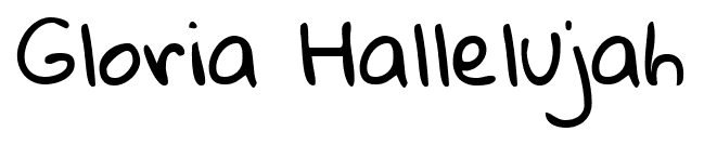 Tiny Small Medium Large Gloria Hallelujah font Kimberly Geswein Website gloriahallelujah.ttf Download 1127 downloads Free for personal use Category: Script » Handwritten Gloria Hallelujah font Free for personal use. Please donate for commercial use. Character Map specimen sheet