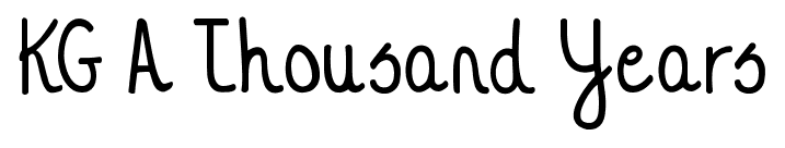 Tiny Small Medium Large KG A Thousand Years font Kimberly Geswein Website KGAThousandYears.ttf Download 958 downloads Free for personal use Category: Script » Various KG A Thousand Years font Free for personal use. Please donate for commercial use. Character Map specimen sheet