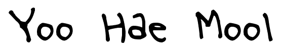 Tiny Small Medium Large Yoo Hae Mool font Kimberly Geswein Website Yoo-Hae-Mool.ttf Download 918 downloads Free for personal use Category: Script » Handwritten Yoo Hae Mool font Free for personal use. Please donate for commercial use. Character Map specimen sheet