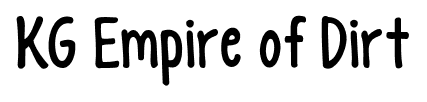 Tiny Small Medium Large KG Empire of Dirt font Kimberly Geswein Website KGEmpireofDirt.ttf Download 1002 downloads Free for personal use Category: Script » Handwritten KG Empire of DirtĀ font Free for personal use. Please donate for commercial use. Character Map specimen sheet