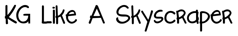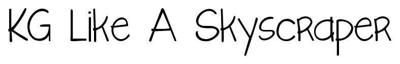Tiny Small Medium Large KG Like A Skyscraper font Kimberly Geswein Website KGLikeASkyscraperBold.ttf KGLikeASkyscraper.ttf Download 923 downloads Free for personal use Category: Script » Handwritten KG Like A Skyscraper font Free for personal use. Please donate for commercial use. Character Map specimen sheet